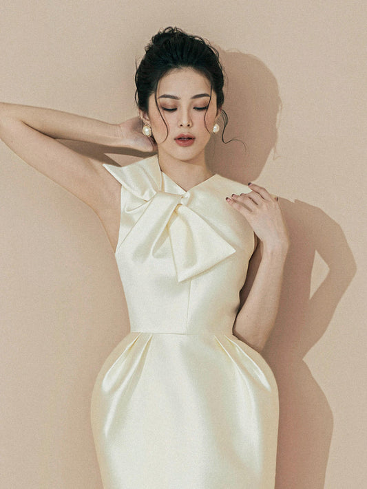 LUXURY HIGH-END HALF BOW MIDI COCKTAIL DRESS - GRACIE