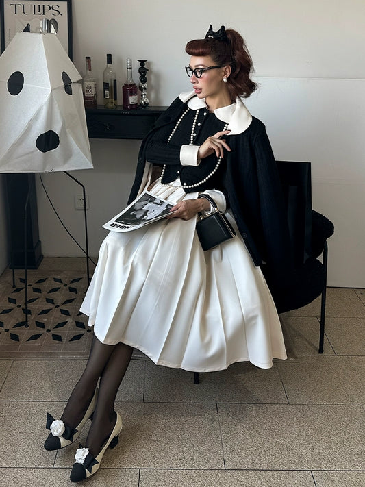 Le Palais Vintage Elegant White High Waist midi Pleated Skirt-Purity