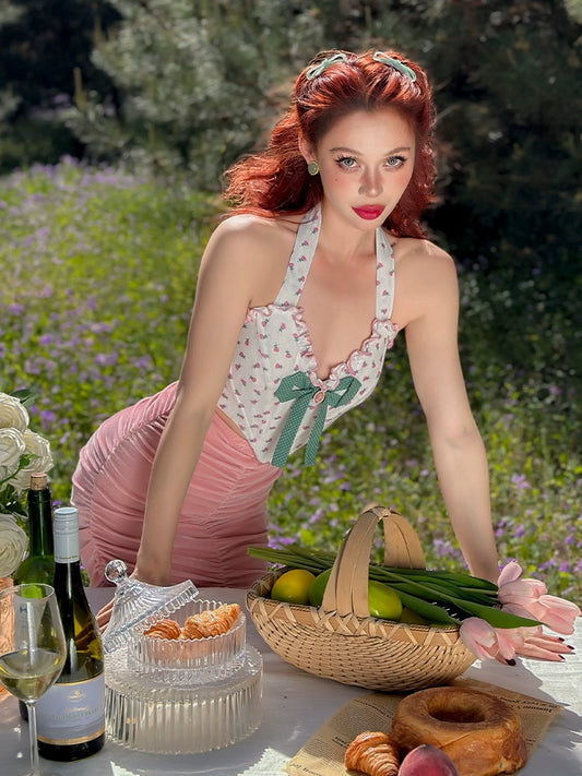 Le Palais Vintage Elegant Crop Floral Fishbone Corset + Cutout Long Gloves-Merry ( V ).
