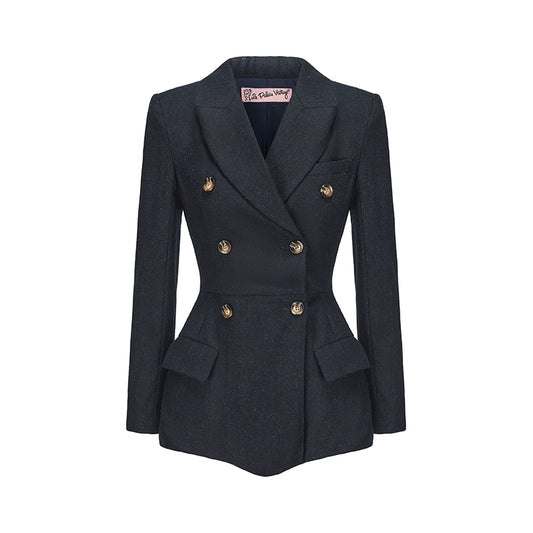 Le Palais Vintage Elegant Navy Blue Drape Suit Collar Long Sleeve Long Coat-KIATE.
