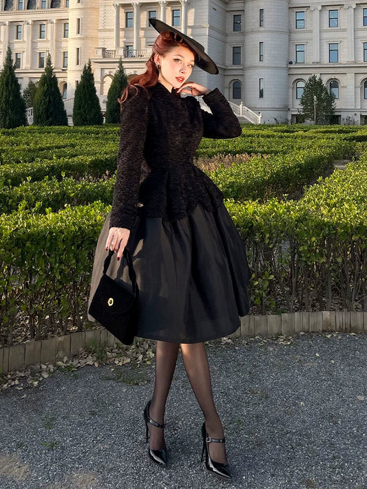 Le Palais Vintage large skirt black woolen coat-KIA