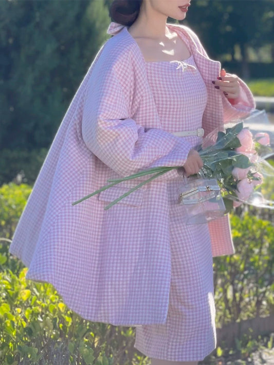 Le Palais Vintage Autumn Pink Plaid babydool Long Sleeve coat Jacket-Natalie