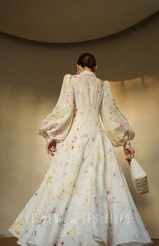 LE VENT&TES AILES Luxury summer vacation floral print Fancy Midi Dress-ZOE