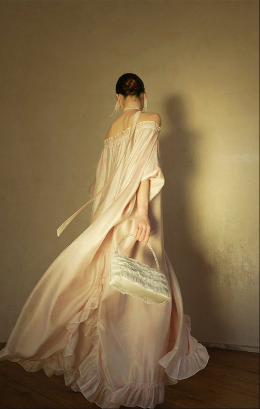 LE VENT&TES AILES Hyacinth Silk Resort Off-Shoulder Robe Maxi wedding guest Dress-KELLY