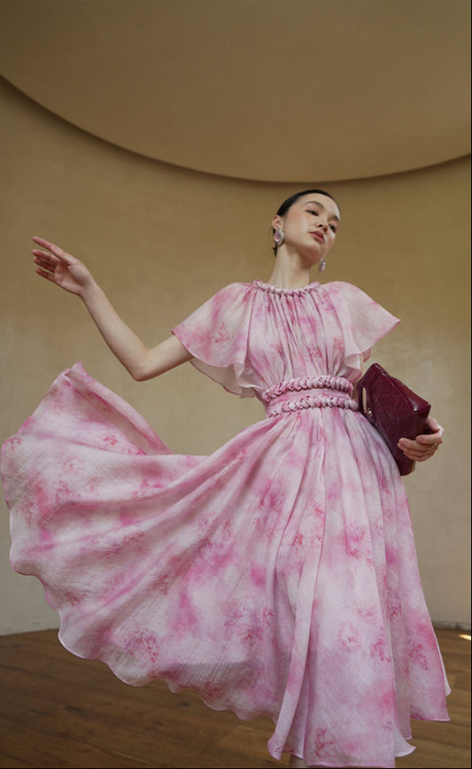 LE VENT&TES AILES Sakura Tencel Smudge Slip Skirt Loose Top Handmade-BECCA