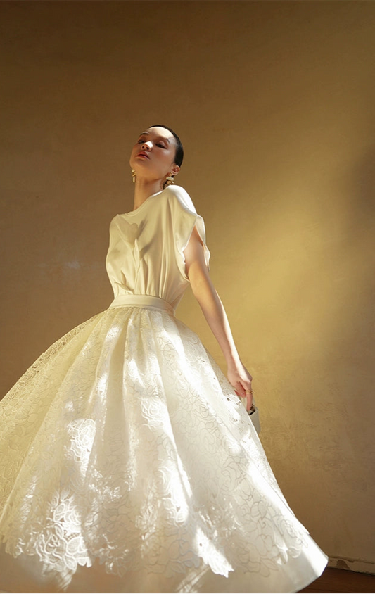 LE VENT&TES AILES French embroidery lace elegant A-line fill skirt-ESME