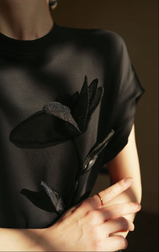 LE VENT&TES AILES handmade Lush 100 cotton 3d flower short-sleeved top-Lyra