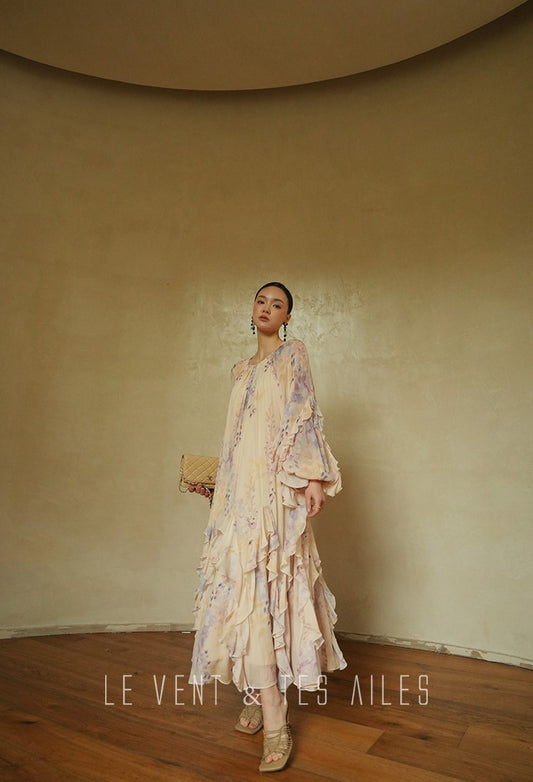 LE VENT&TES AILES floral print silk resort summer vacation maxi dress-GWEN