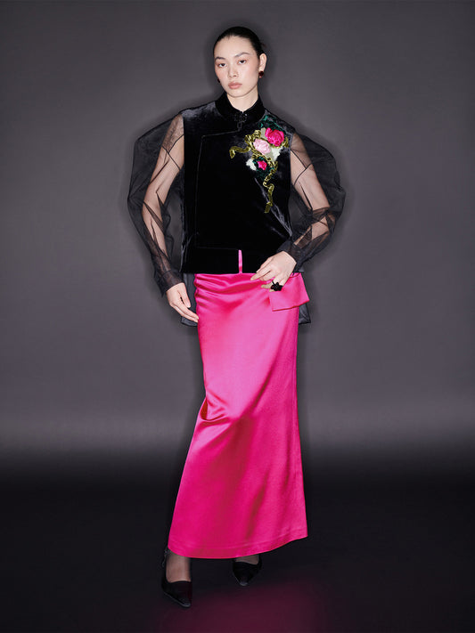 M ESSENTIAL Mackay designer brand handmade rose embroidered embellished velvet vest - GRANY