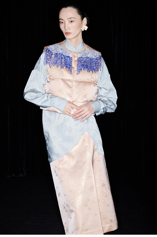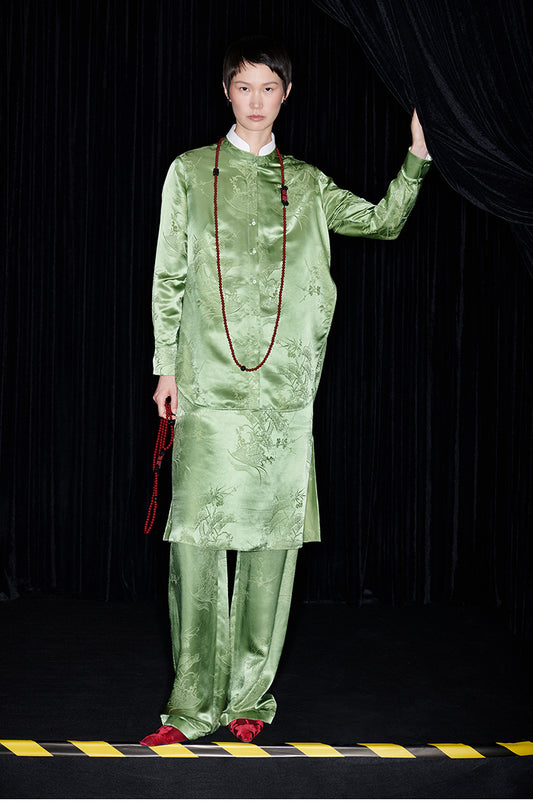 M essential Mackay Chazen silk jacquard disc button-up stand collar shirt pant set - eigiu.