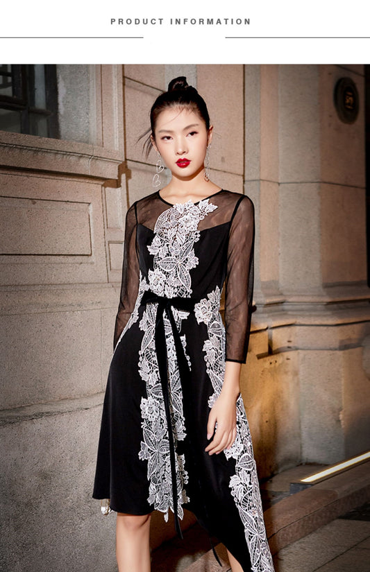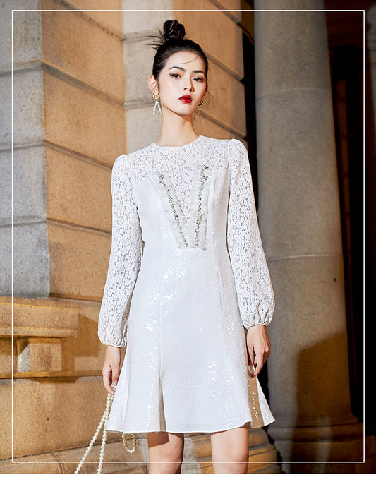 Lace dress has a classic U-neck silhouette and a short skirt dress - Tiana