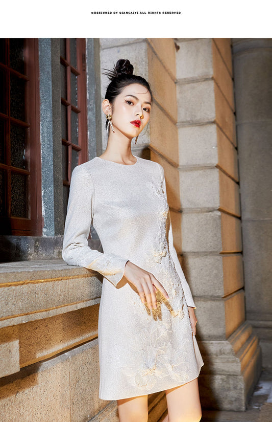 One shoulder design, sequins for subtle glamour, and a lotus leaf sleeve dress- Hera
