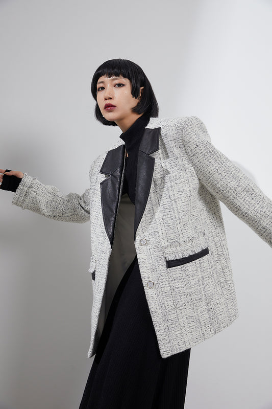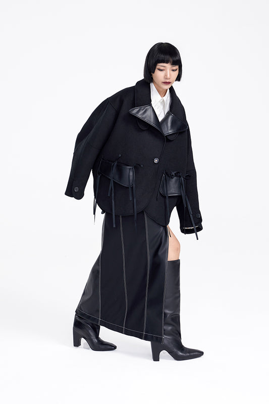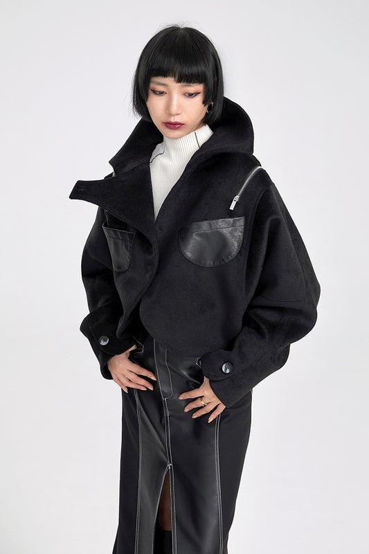 TINY IN women's black shoulder zipper cropped wool jacket- LOU