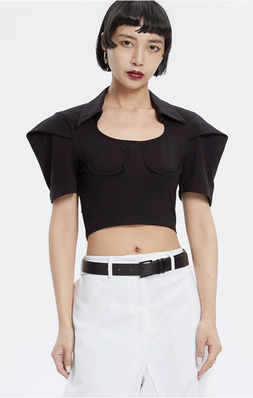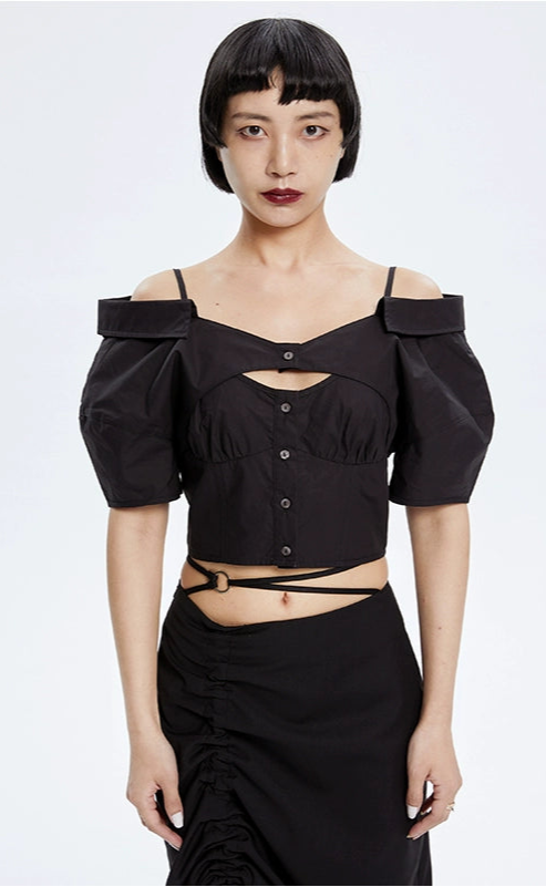 TINY IN stitched off-the-shoulder cut-out ultra-cropped women's shirts- CART