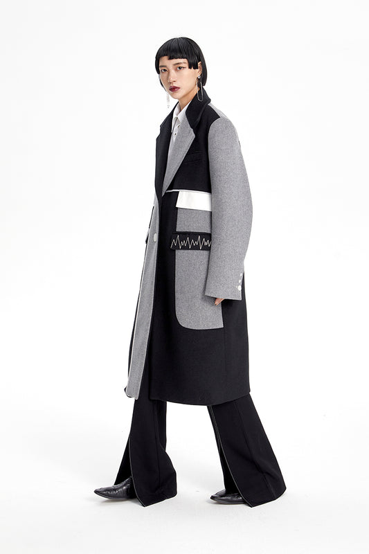 TINY IN Asymmetric black and gray wool women's coat- TRAIL