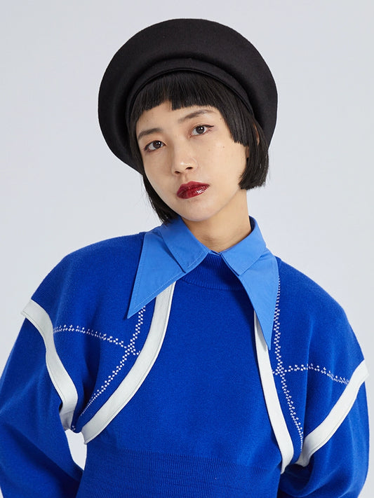 Tiny IN short stitching sweater women's irregular hem blue Top-NANA