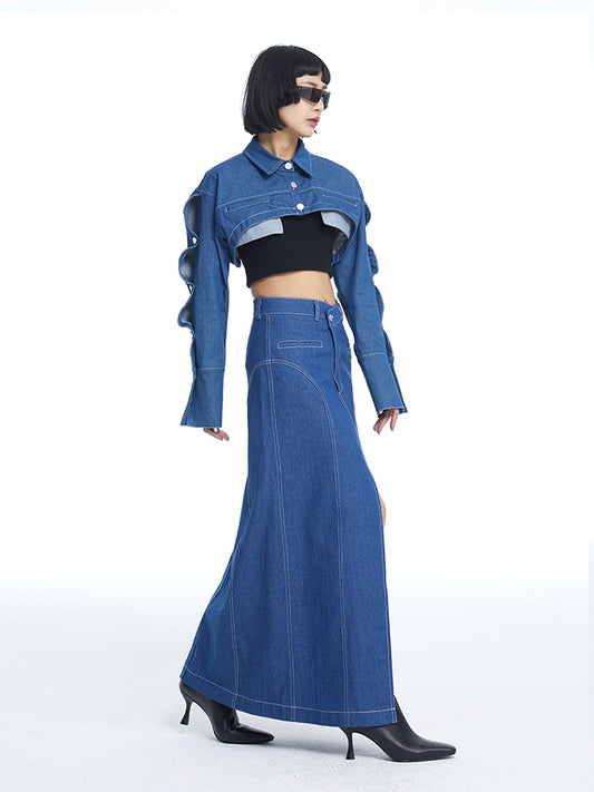 TINY IN large slit long three-dimensional denim skirt -MANNIE