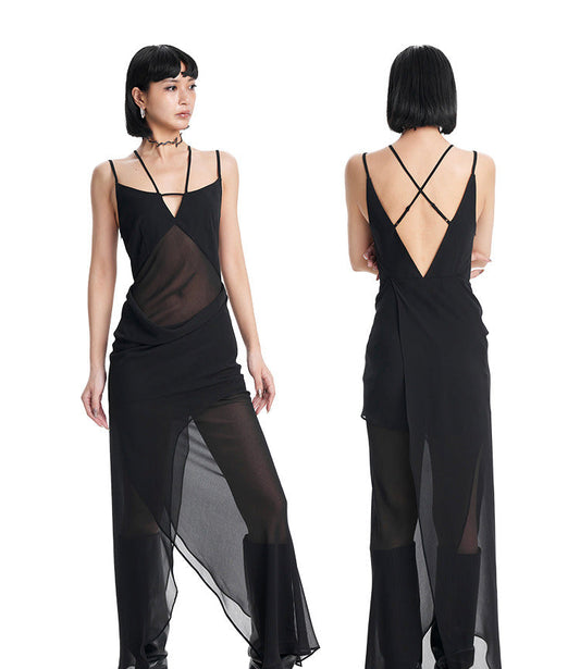 TINY IN Black irregular panelled slip cut-out backless maxi dress -AKIRA