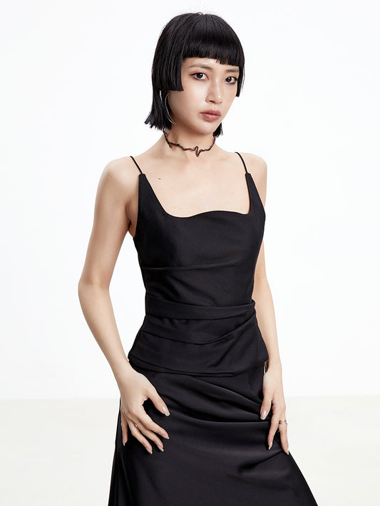 TINY IN w-neck pleated black white back zipper camisole - PIPER