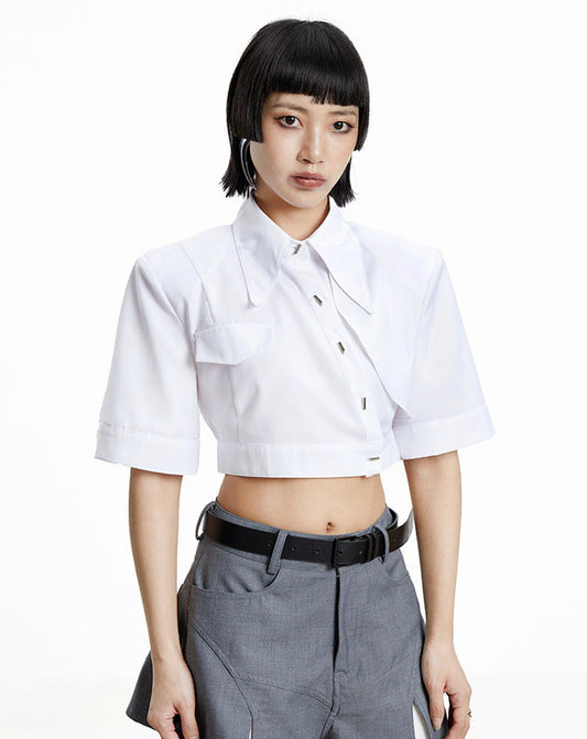 Tiny in three-dimensional square sleeve cross collar tie irregular shirt top women's short -CAM