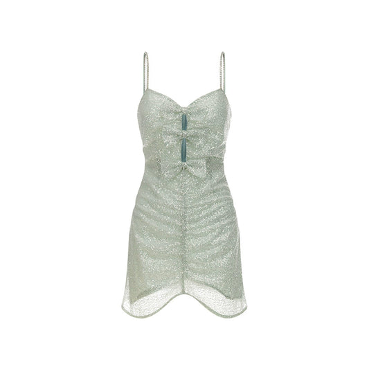 Wardrobes by Chen Luxury Bow mint green Sequin Sleeveless Short party Dress-BANA