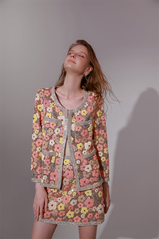 Wardrobes by Chen High End Diamond Sequin floral Jacket/Short Skirt- Candace