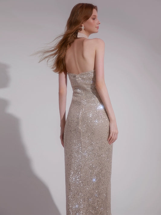 Wardrobes by Chen High End Sequin Halter Neck Cocktail Dress-Davy