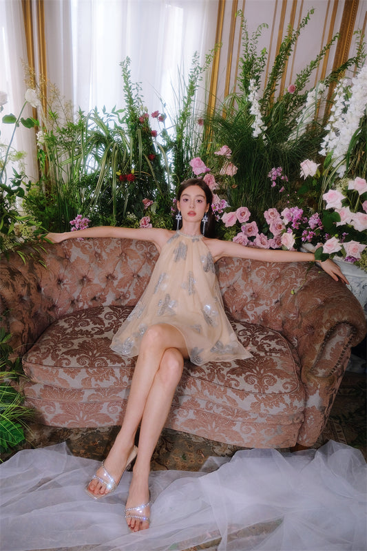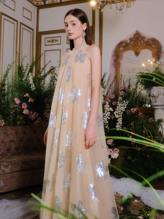 Wardrobes by Chen Luxury Nude Hanging Neck Sequin Loose Vacation Dress- Baiey
