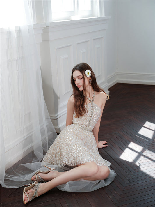 Wardrobes by Chen Luxury beige Flower Sequin Embroidered doll Party Dress-Udoh