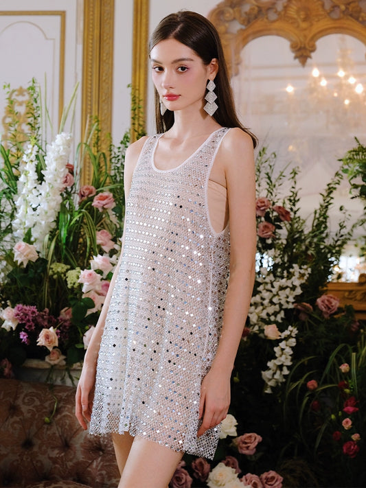 Wardrobes by Chen Luxury Sexy Mesh Loose Diamond slip tank party Dress-Ami