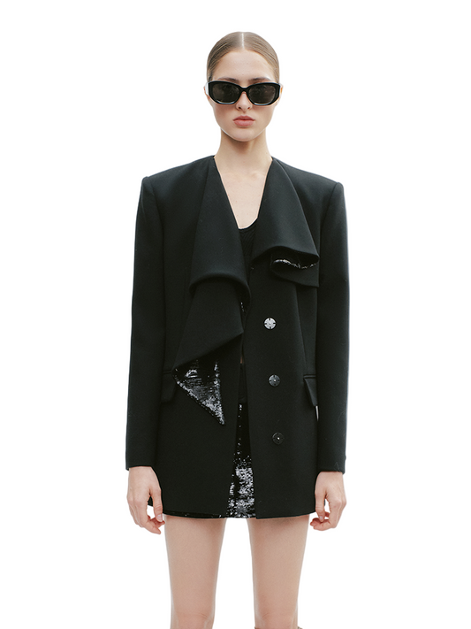 YES BY YESIR sheep wool layered lapel long jacket - INIT.
