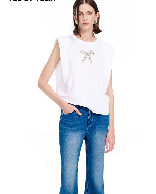 YES BY YESIR | Ye Qians Full Diamond Bow Crew Neck Sleeveless T-Shirt -VERALYN.