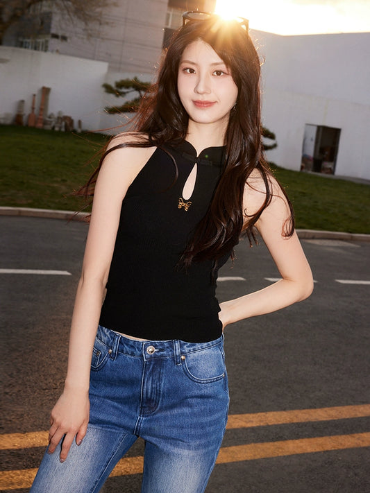 YES BY YESIR Ye Qians Chinese Halterneck Shaved Shoulder Knitwear -ANASTELLE.