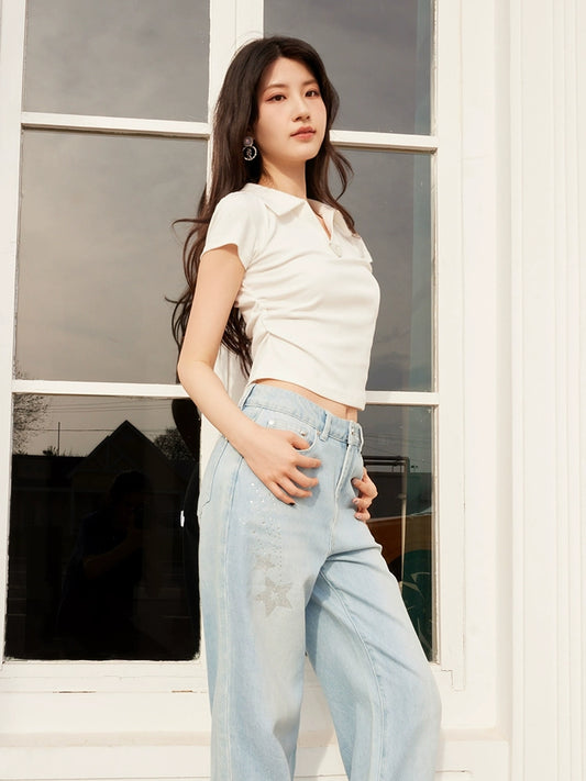 YES BY YESIR | Ye Qian Y-Triangle Tag Polo Neck T-Shirt Delicate Pleats-LOREINE.