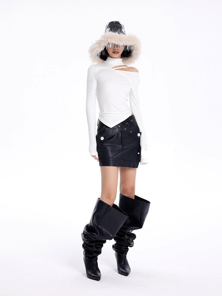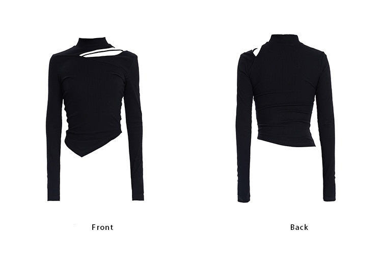 Elevate your wardrobe with our irregular cut-out off-the-shoulder long-sleeved T-shirt. The classy design exudes luxury and sophistication, while the slim fit and half-neck base layer add a touch of elegance to any outfit. Don't miss this exclusive offer!