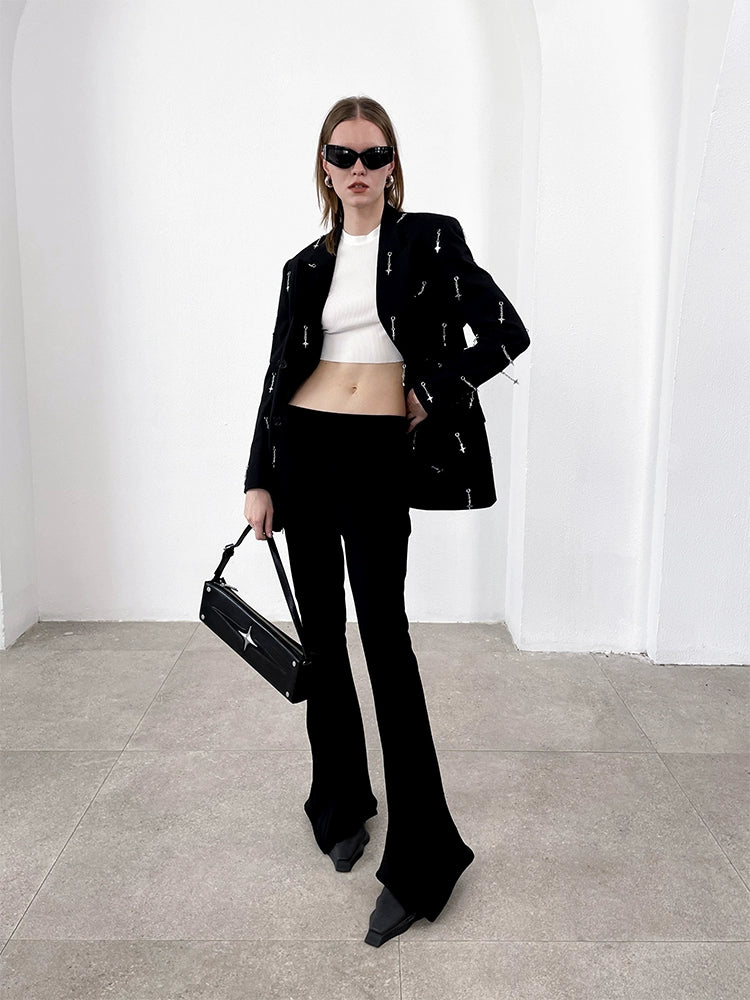 Elevate your style with the Metal Four-pointed Star Pendant Suit Jacket for women. Featuring a striking star pendant detail, this jacket blends edgy design with refined tailoring for a bold yet sophisticated look. Perfect for making a statement at work or special occasions, it adds an instant touch of modern elegance to any outfit. Embrace confidence and individuality with this unique piece from this collection.