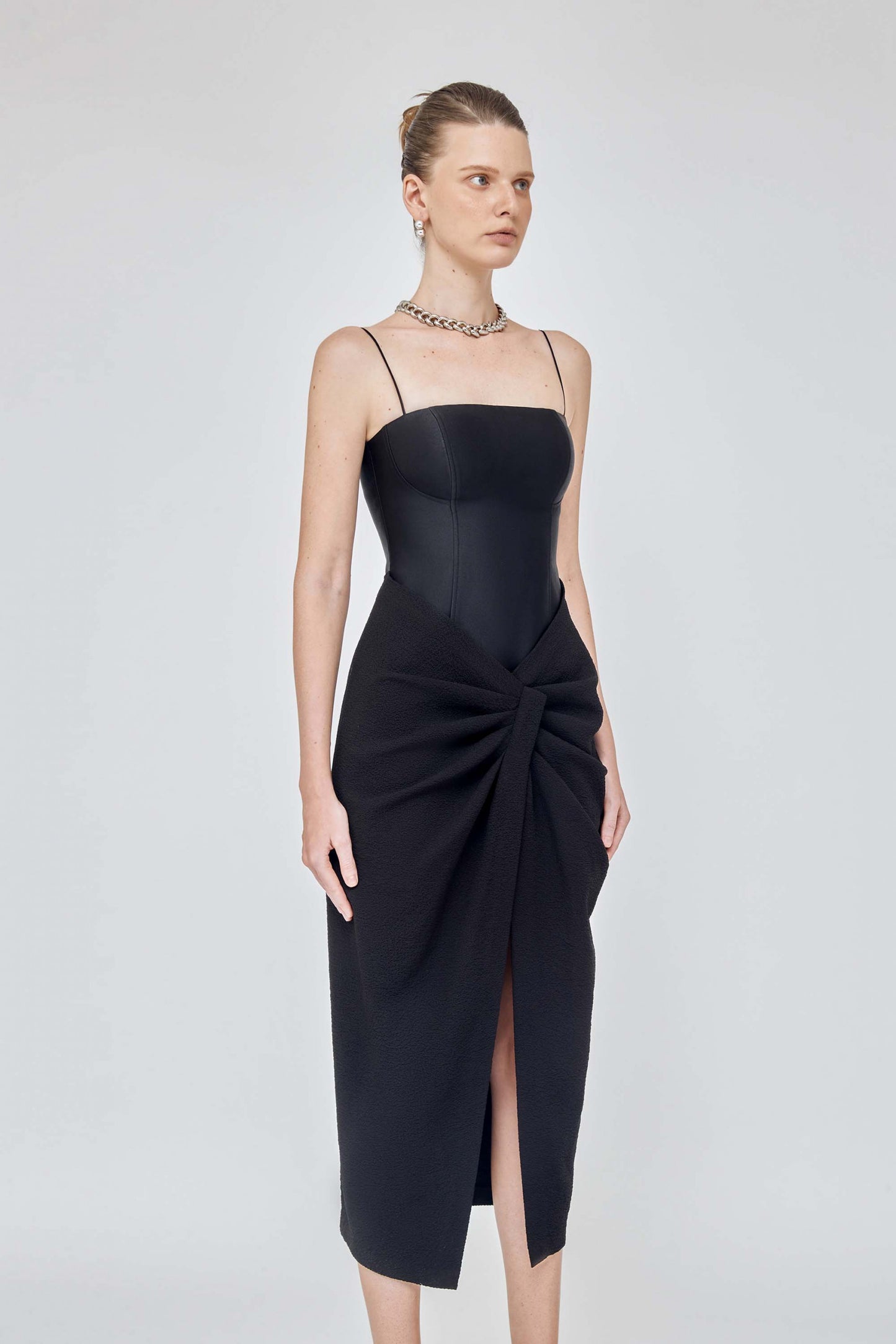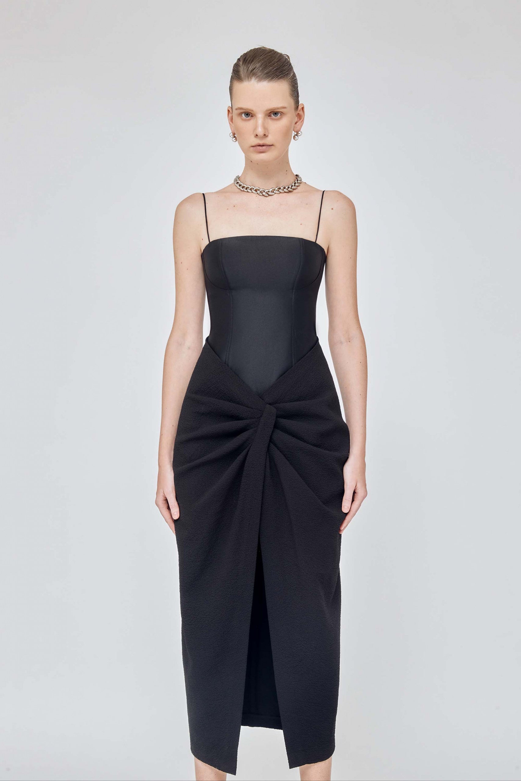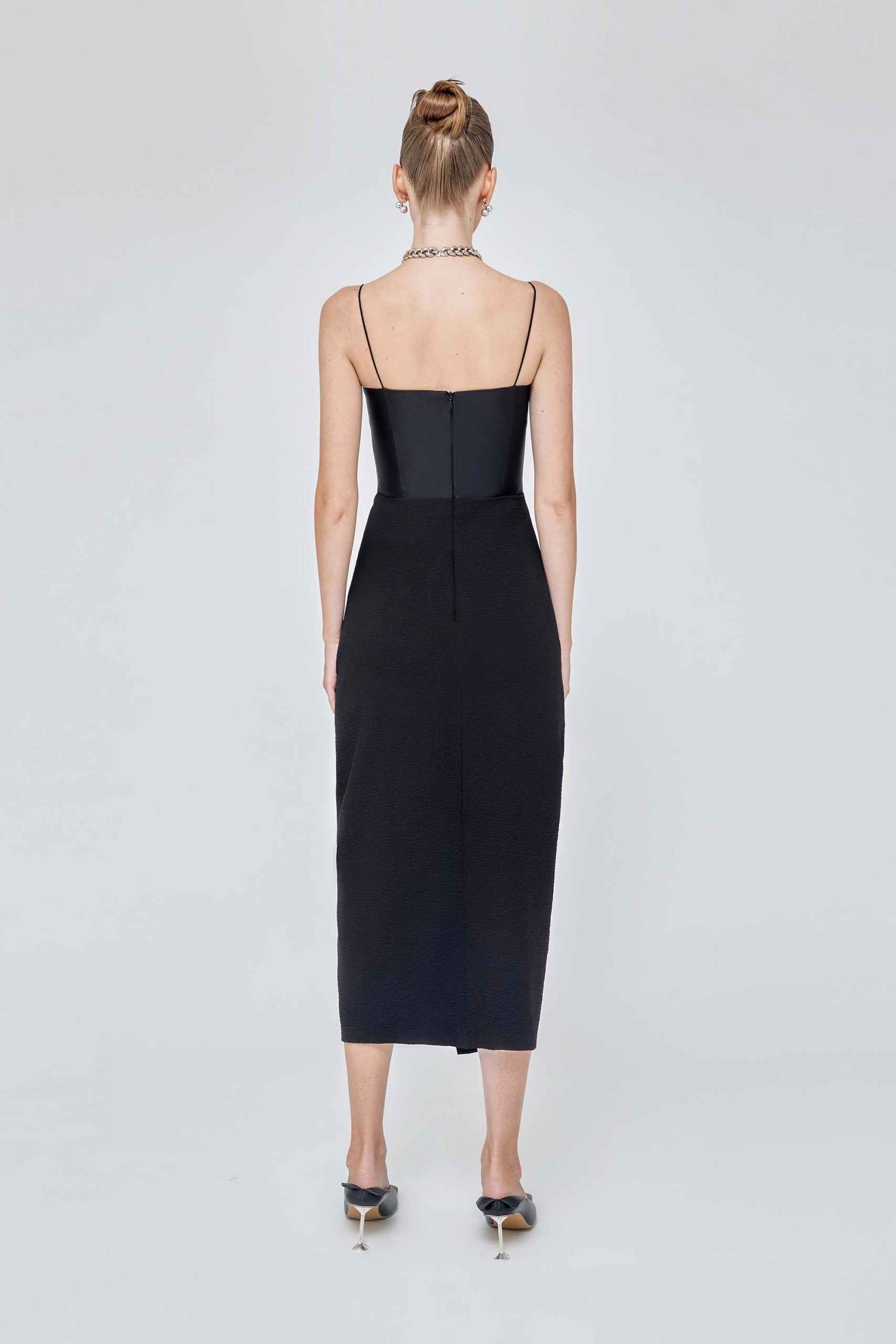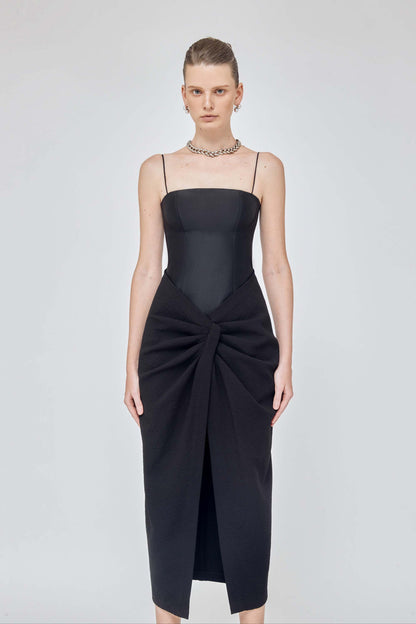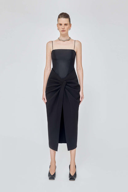 Black Spaghettig fauz wwrap bustier lbd black cocktail dress - Blanche