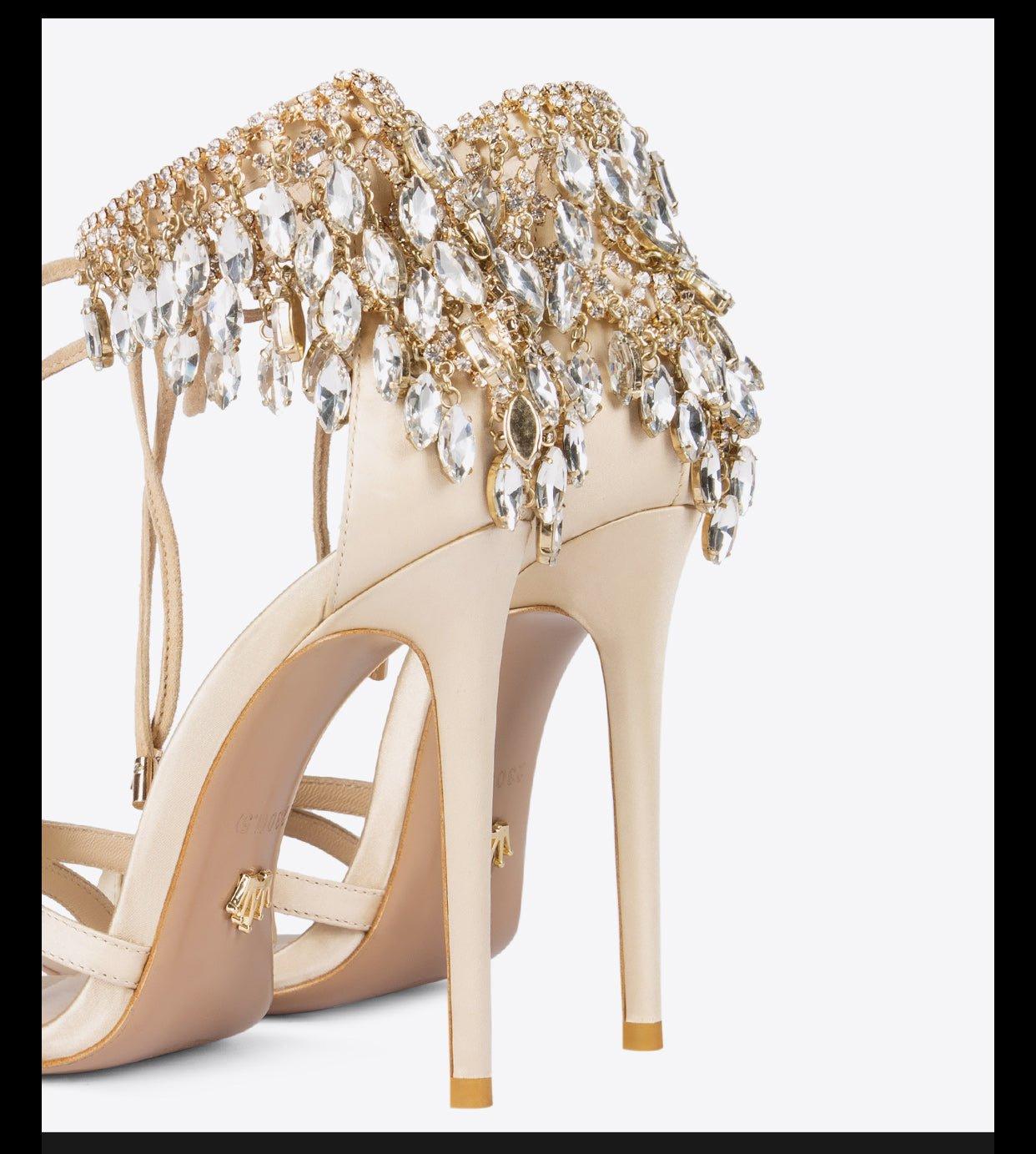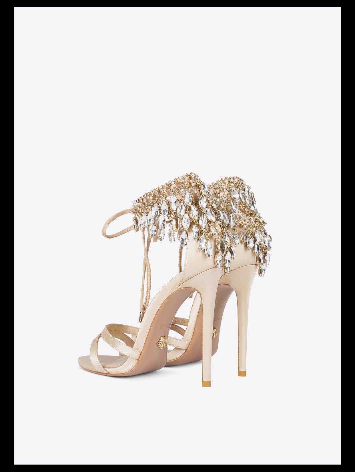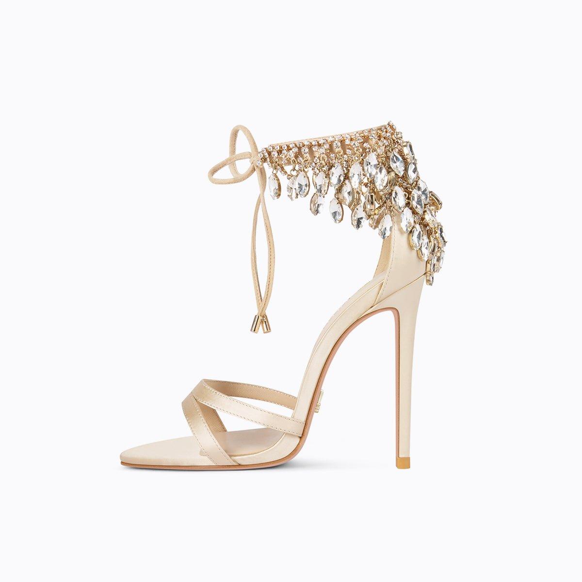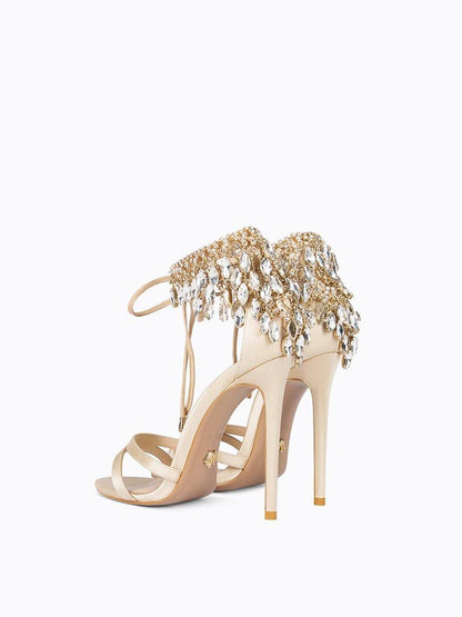 Champagne crystal drop open-toe lace-up dress high-heel sandals shoes - Imia