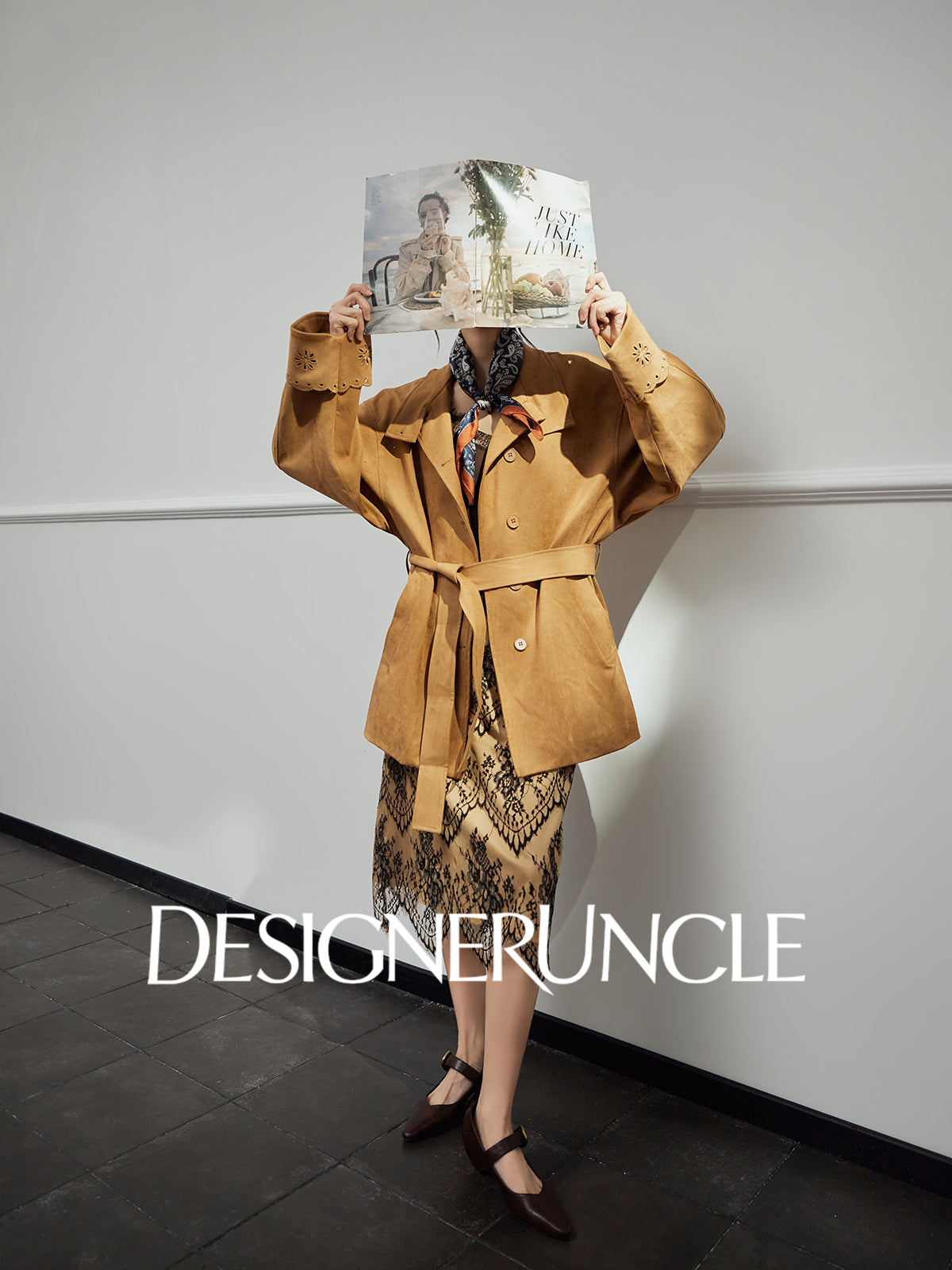 DGU "Vine Sand" coffee color short jacket new commuter versatile loose slimming retro top - Morgan.