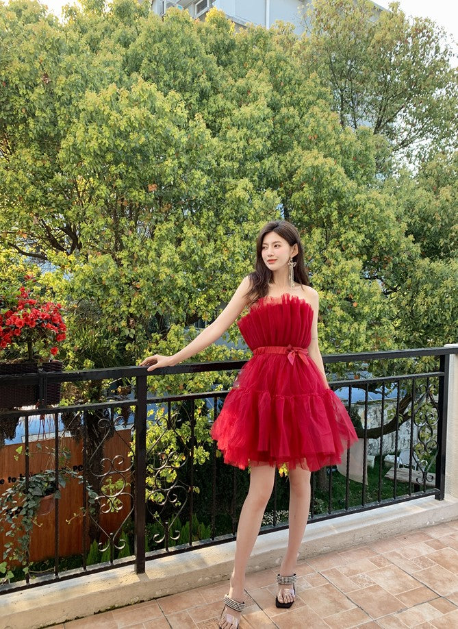 DOLLY Elegant Sleeveless Off Shoulder Chest Wrap Midi Princess Dress-JANEY