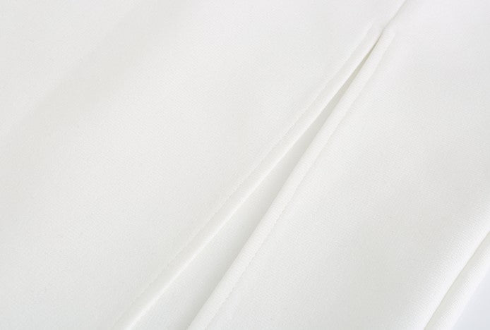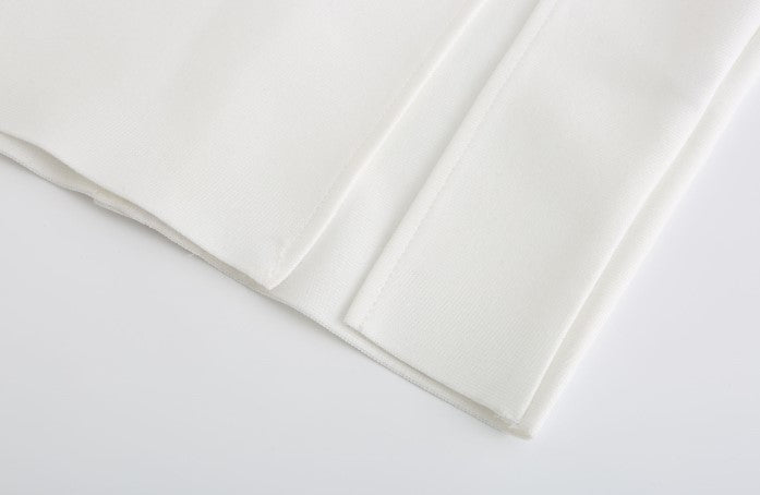 Elevate your style with DOLLY's High End White/Black Sleeveless Ruffled Halter Neck Top + Pleated Skirt - SOLANGE. This elegant and sophisticated dress will make a statement at any event. The stunning ruffled halter neck top paired with a pleated skirt exudes luxury and exclusivity. Perfect for those with a taste for high-end fashion.