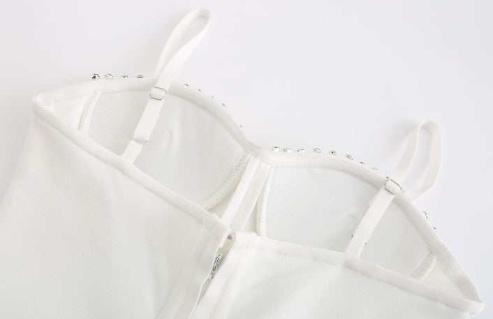 DOLLY Luxury 0ff Shoulder Sleeveless Diamond Bandage Sexy Slit Banquet Dress-PALOMA