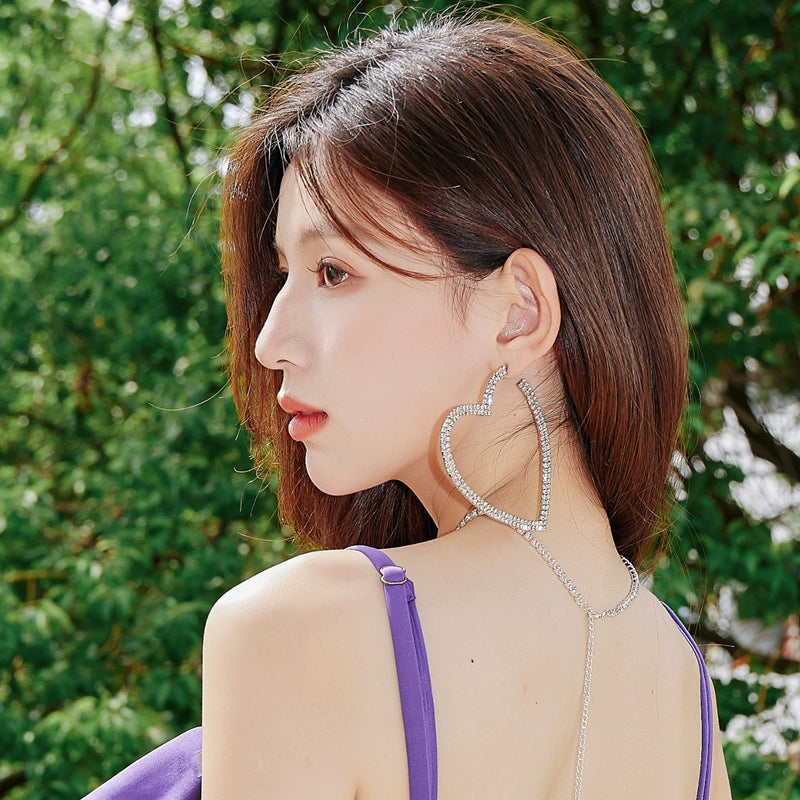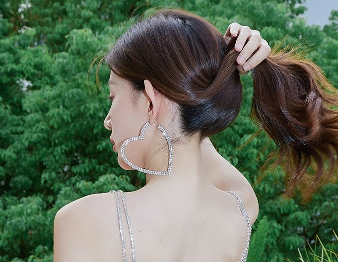 Introducing DOLLY's Luxury Big Heart Full Diamond American Style Chic Earrings - LUNA. Be the envy of all with these exquisite earrings, glistening with full diamond detailing and crafted in a bold heart shape. Elevate any outfit with these luxurious earrings, the perfect addition to any fashion lover's collection.
