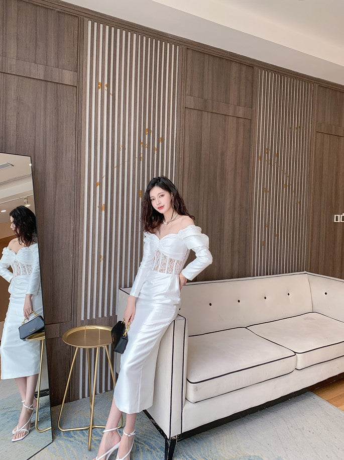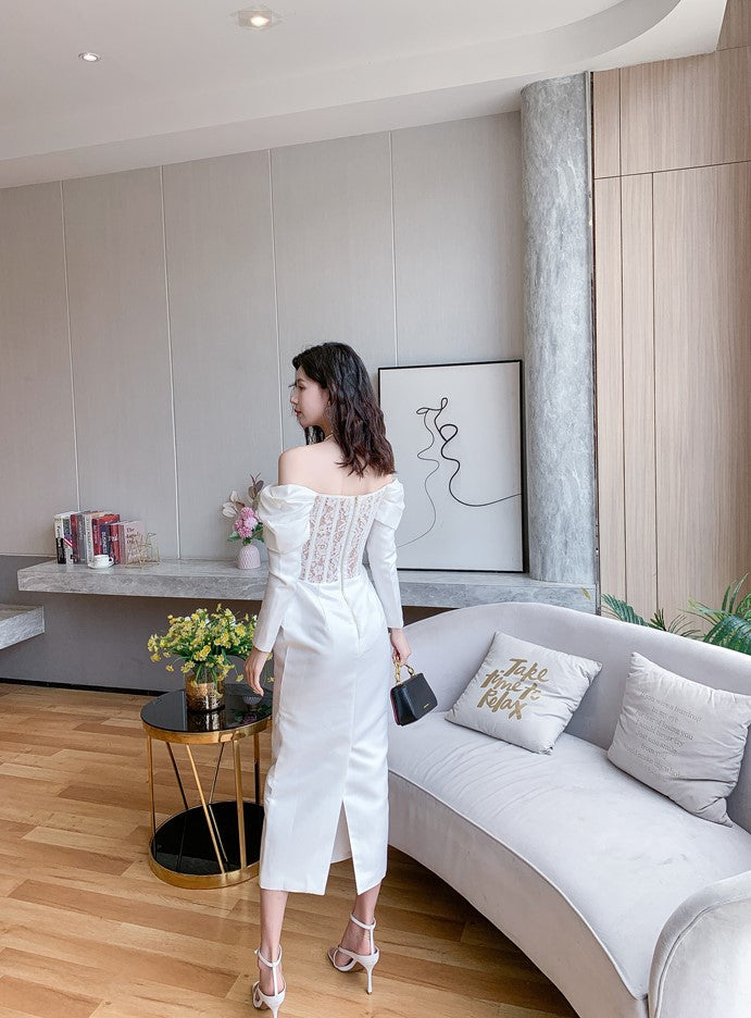 DOLLY Luxury French Style Off Shoulder Long Sleeve Corset Banquet Dress-JOLIE