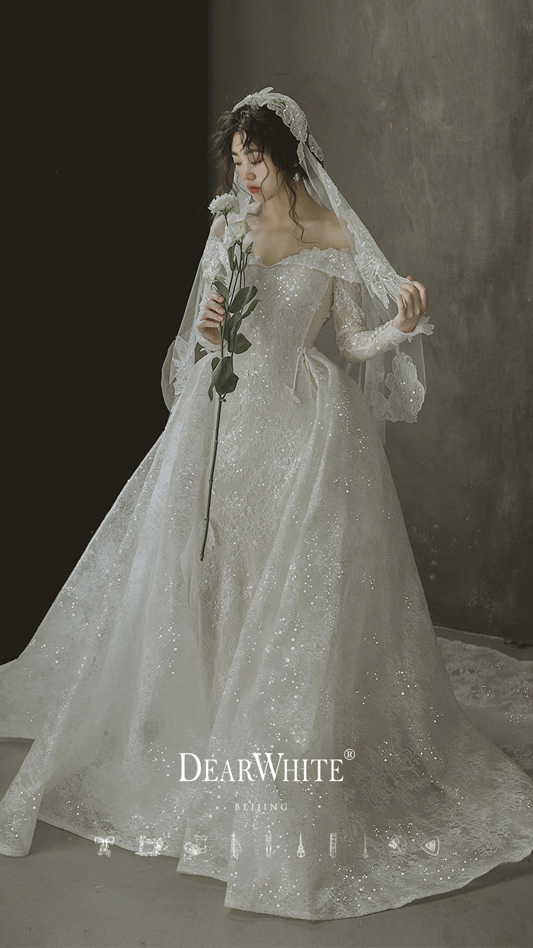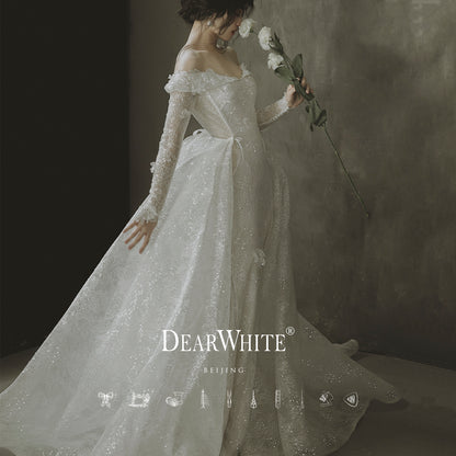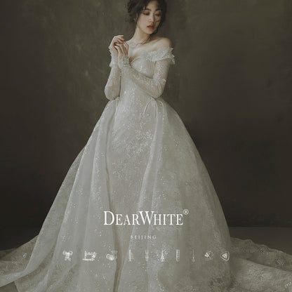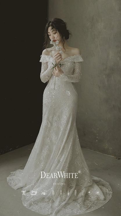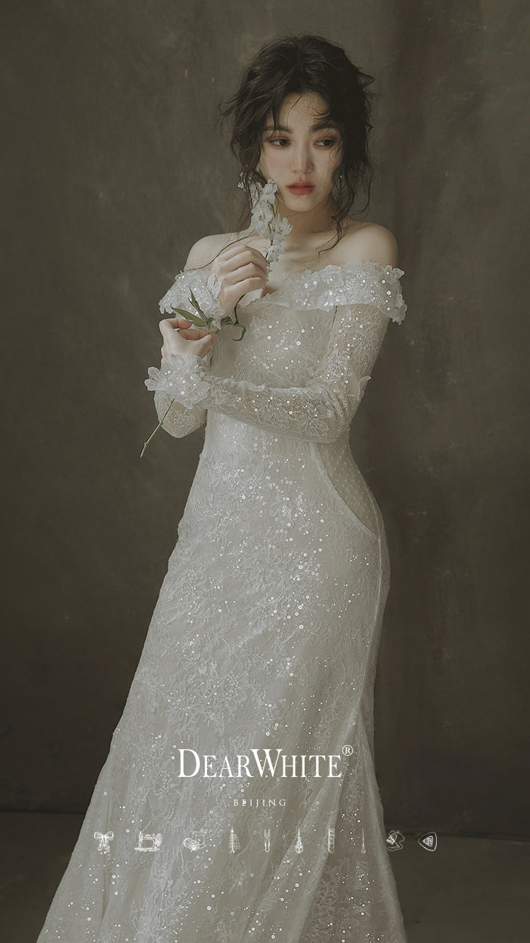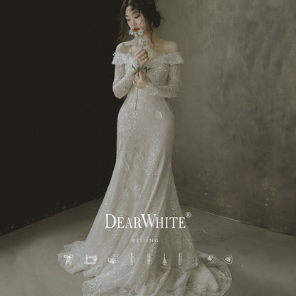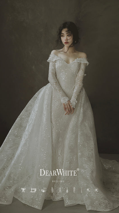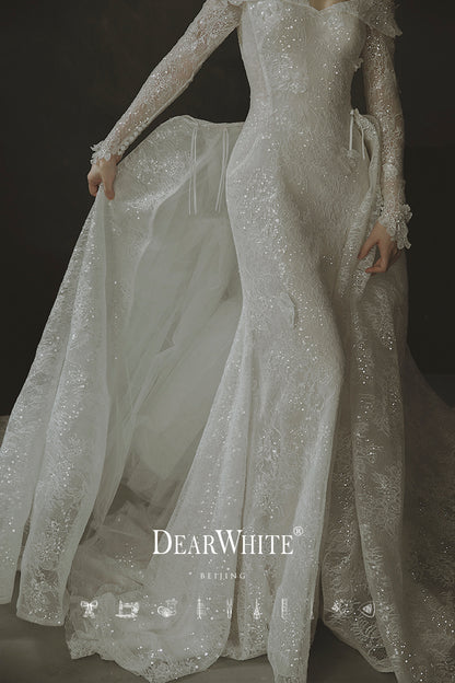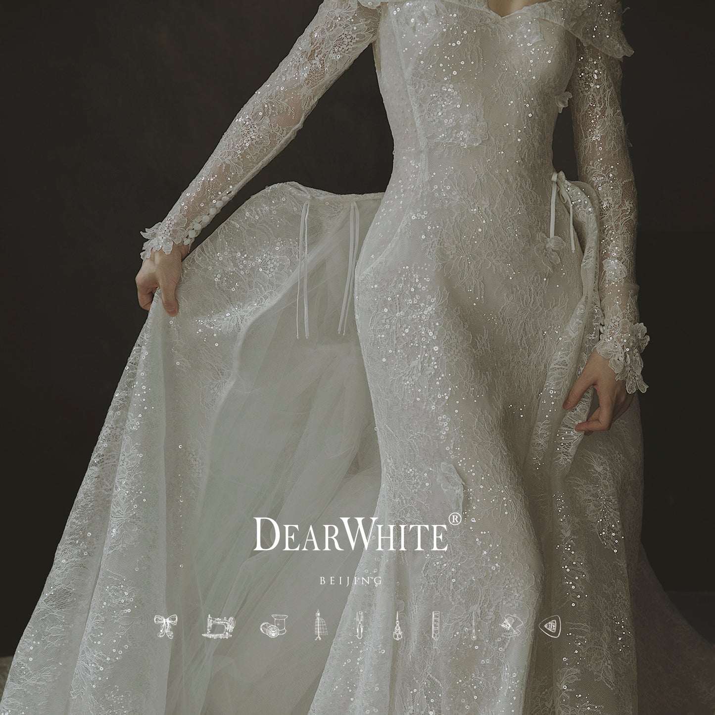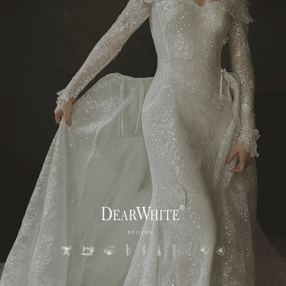Early Spring 2023 original one-shoulder bride two-wear dress mermaid wedding dress- Twin mirror
