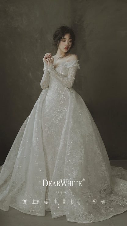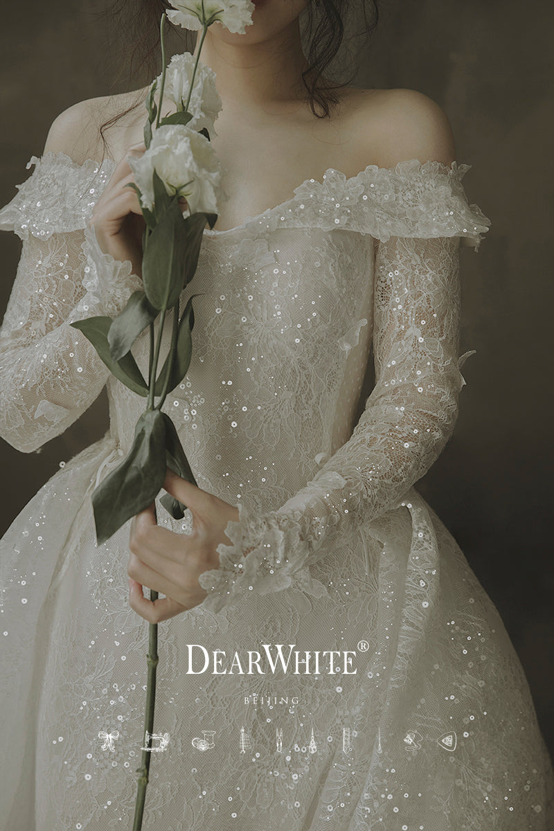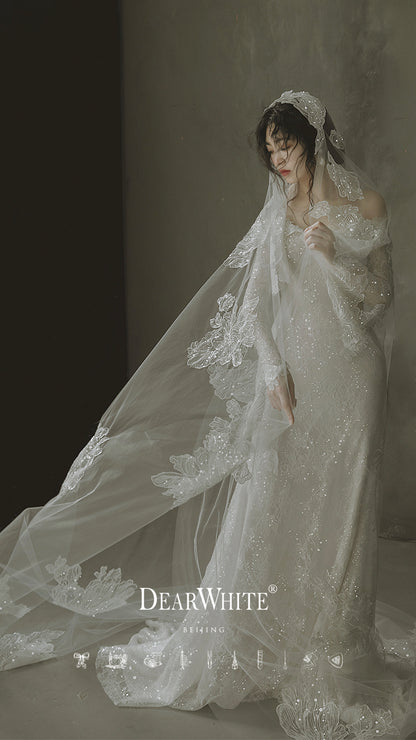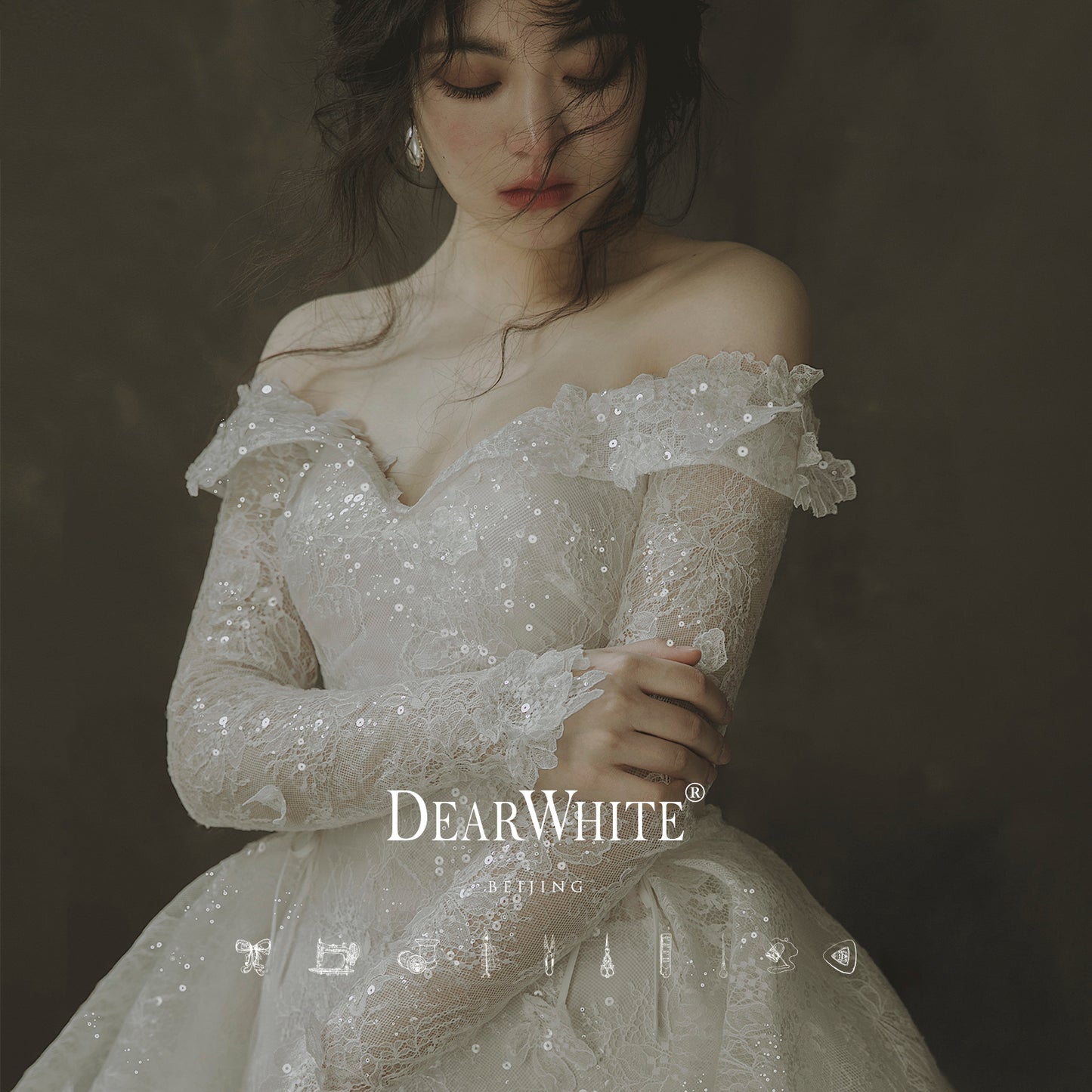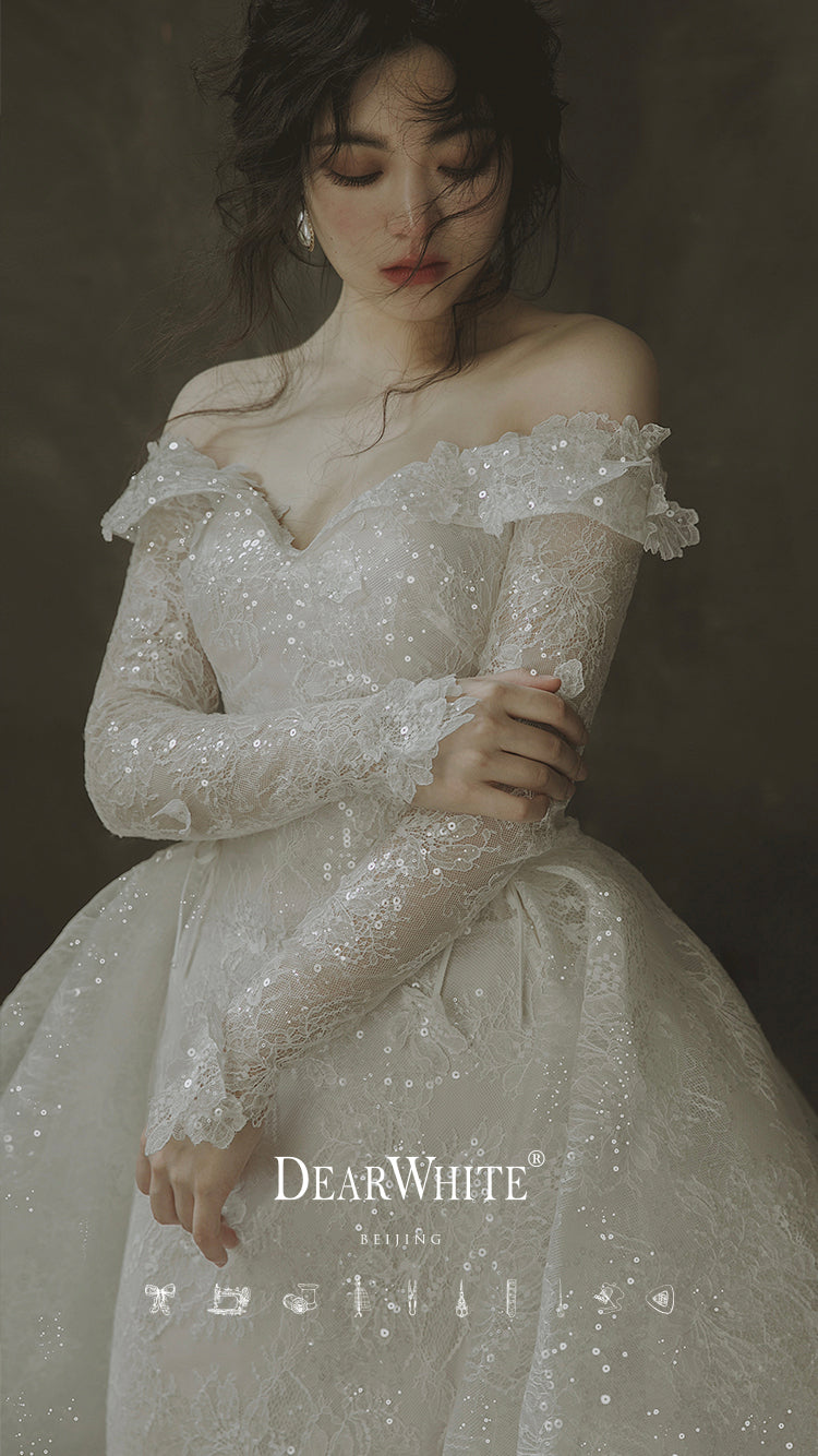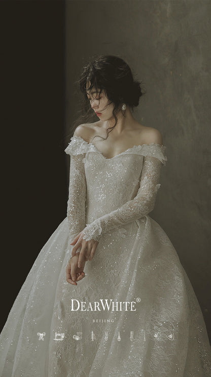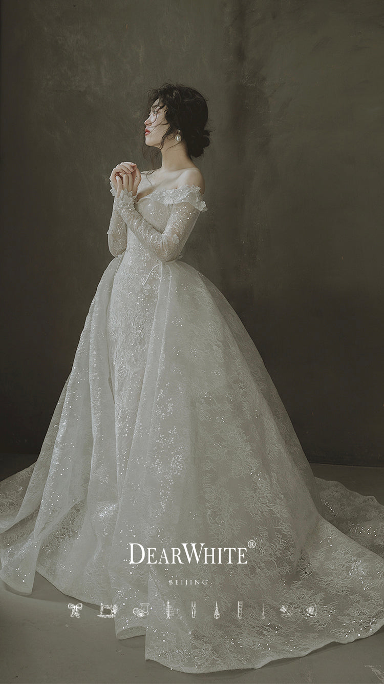 Early Spring 2023 original one-shoulder bride two-wear dress mermaid wedding dress- Twin mirror