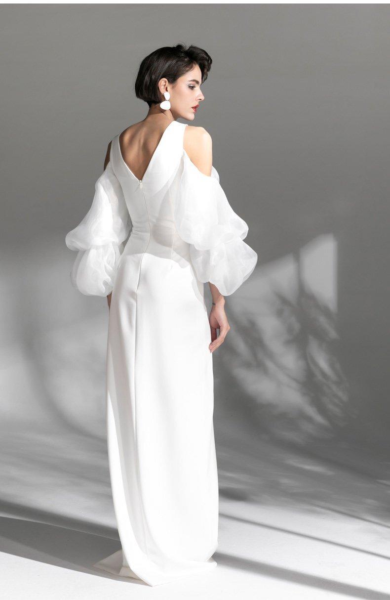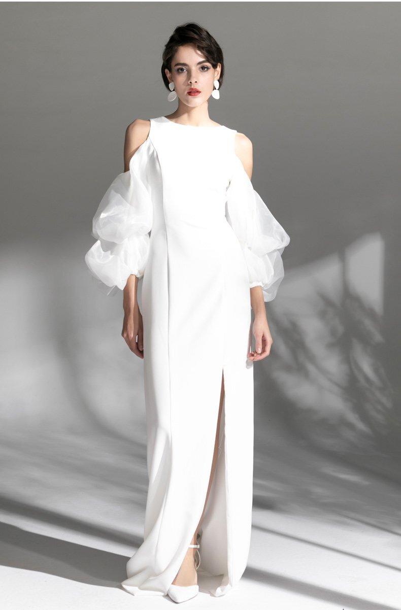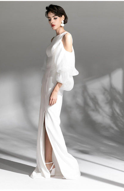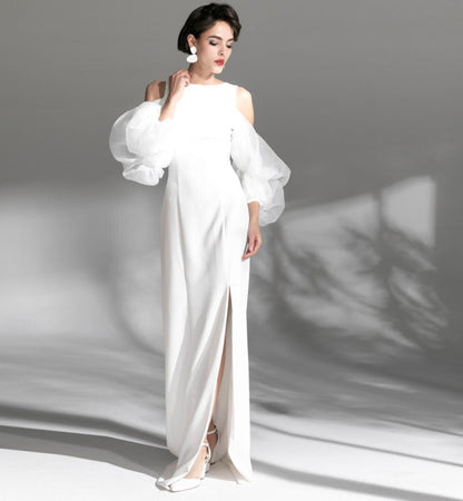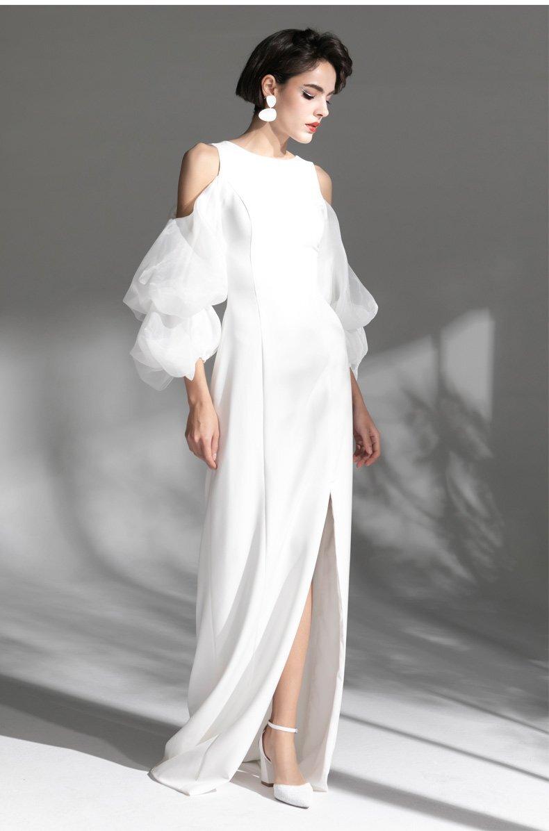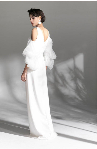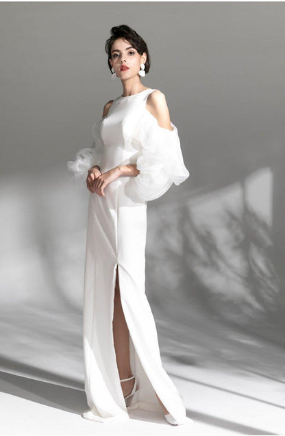 Elegant Simple white long-sleeved evening dress bridal wedding dress - Emilie