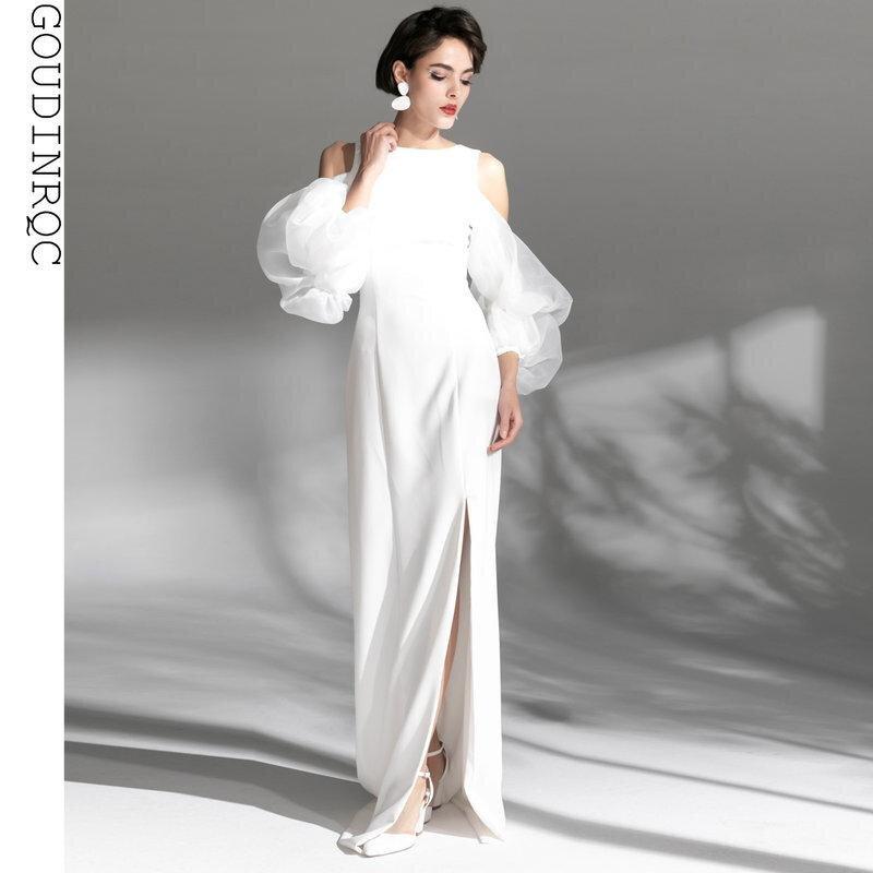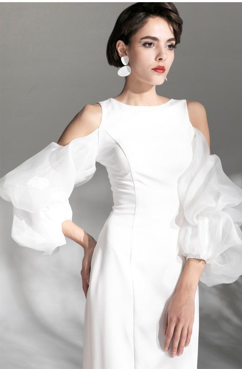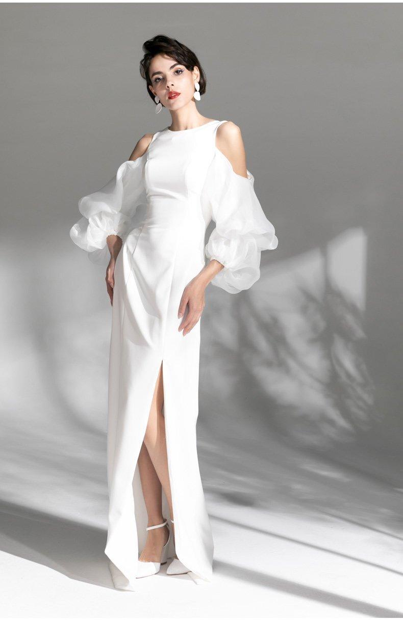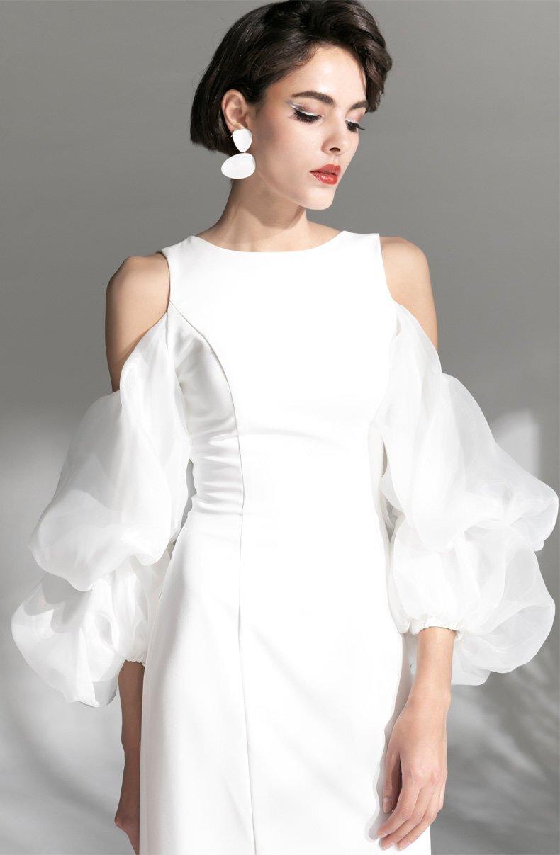 Elegant Simple white long-sleeved evening dress bridal wedding dress - Emilie