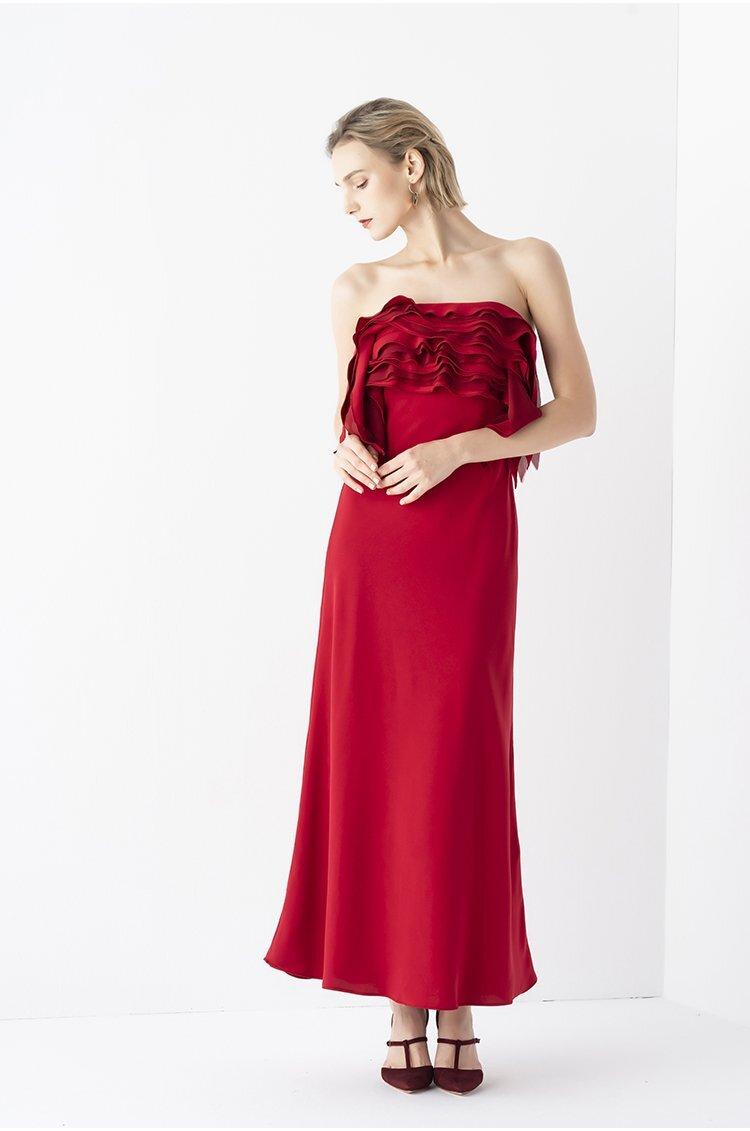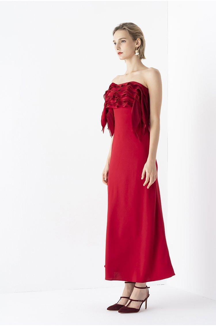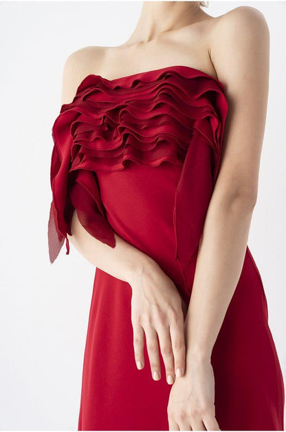 Elegant strapless Chest midi Red ruffle BriDal evening cocktail Dress - Bita