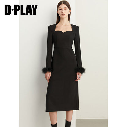 Fall Autumn French Feather Paneled Little Black Dinner Dress - Navail